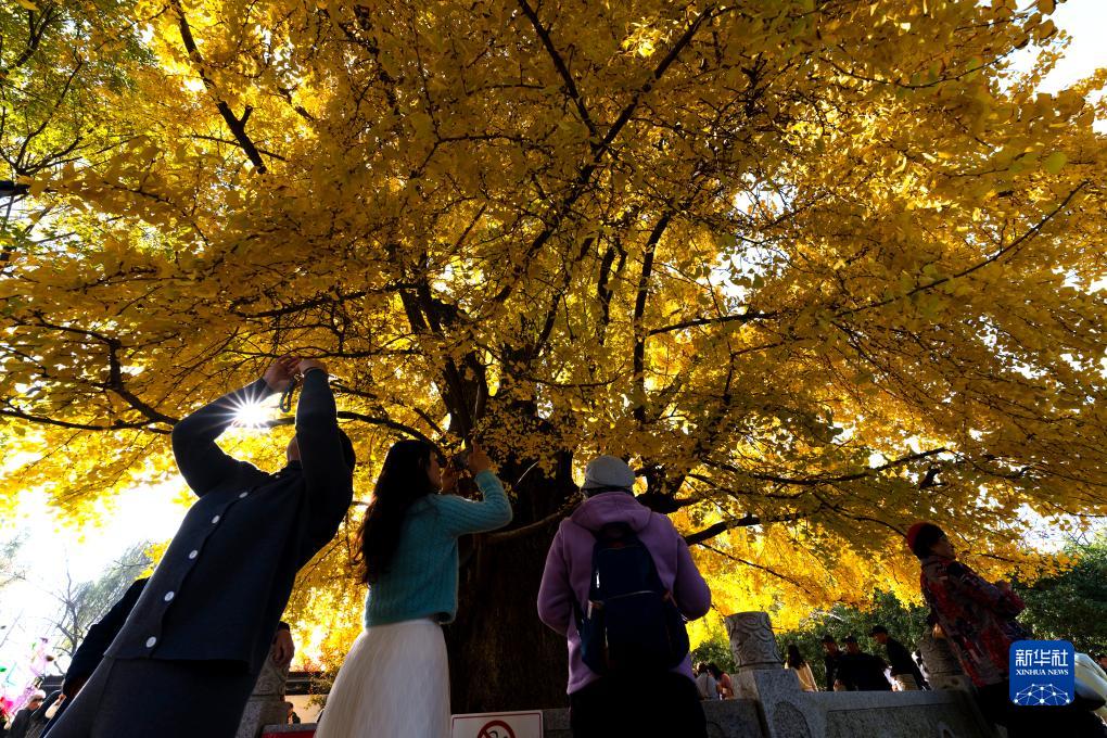 12月7日,上海嘉定古樹公園的千年銀杏吸引眾多游人前來賞葉。