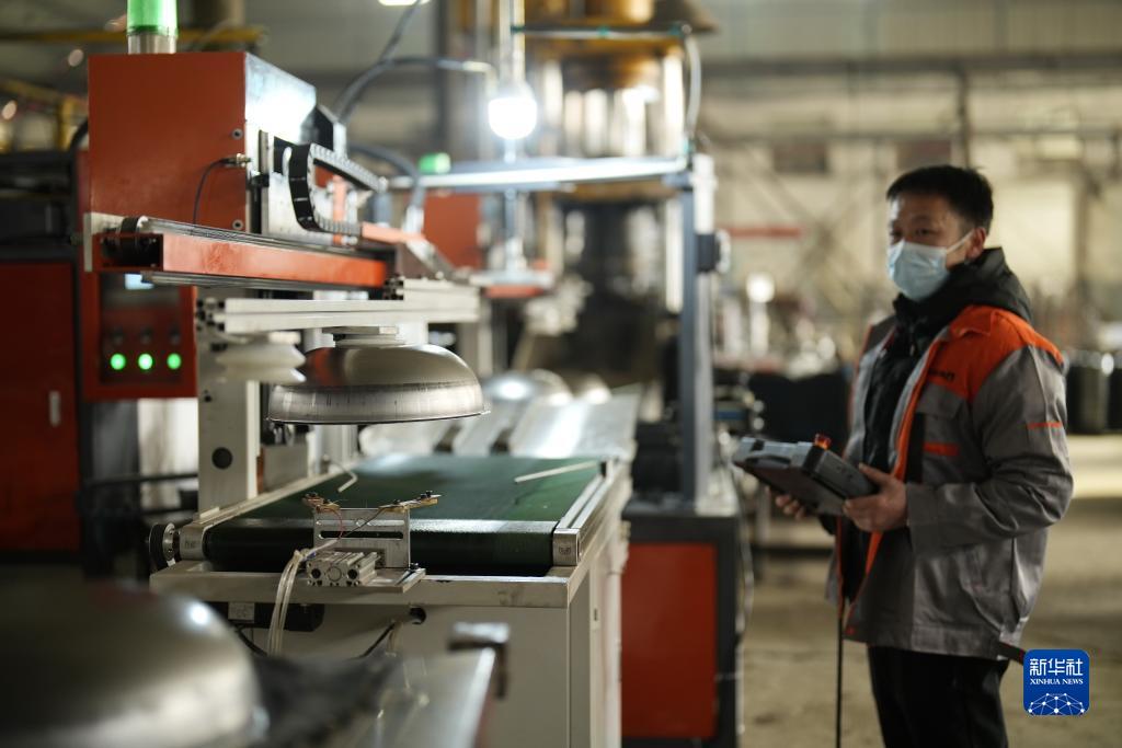 12月7日,玉田縣一家廚具生産企業的工人在調試自動化生産線。
