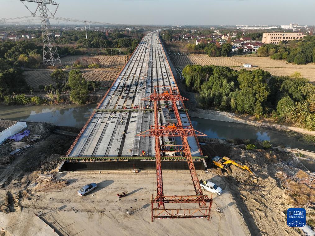 這是蘇&高速公路七都至桃源段ST-QL5標主線橋梁架設現場(12月7日攝,無人機照片)。