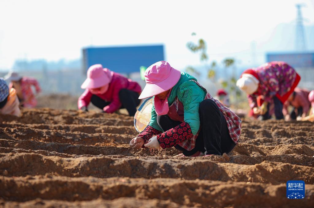 12月7日,貴州省黔東南苗族侗族自治州丹寨縣興仁鎮甲腳村村民在播種中藥材太子參。