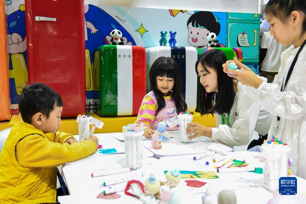 12月7日,小朋友們在兒博會上參與繪畫活動。