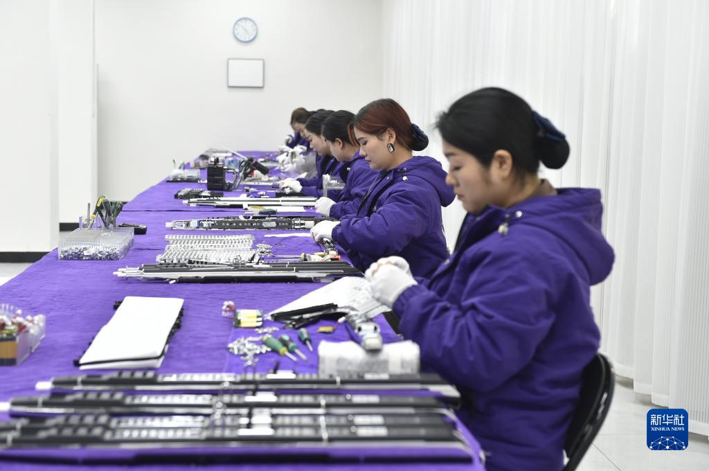 12月7日,工人在張飛返鄉創辦的公司生産線上組裝電吹管。