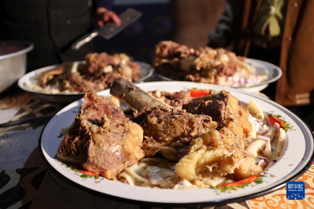 手抓肉,冬宰時最隆重的一餐(11月30日攝)。