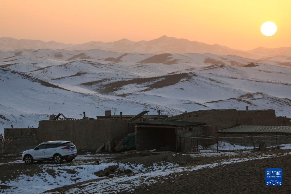 冬牧場上巴哈提家的房屋(12月1日攝)。屋旁的白色汽車是為慶祝小女兒昆樹阿克考上大學所買的禮物。