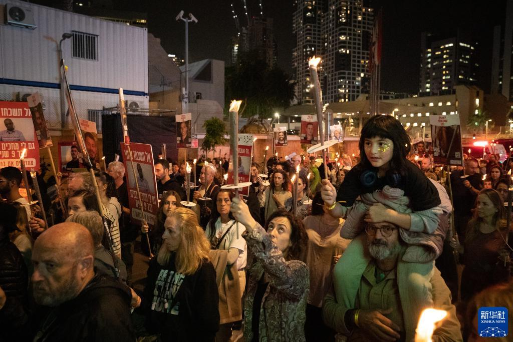 當日,猶太教傳統節日光明節來臨。本輪巴以衝突已持續兩個月,人們在這個特殊的光明節裏點亮蠟燭,祈盼被扣留在加沙地帶的人員早日歸來。