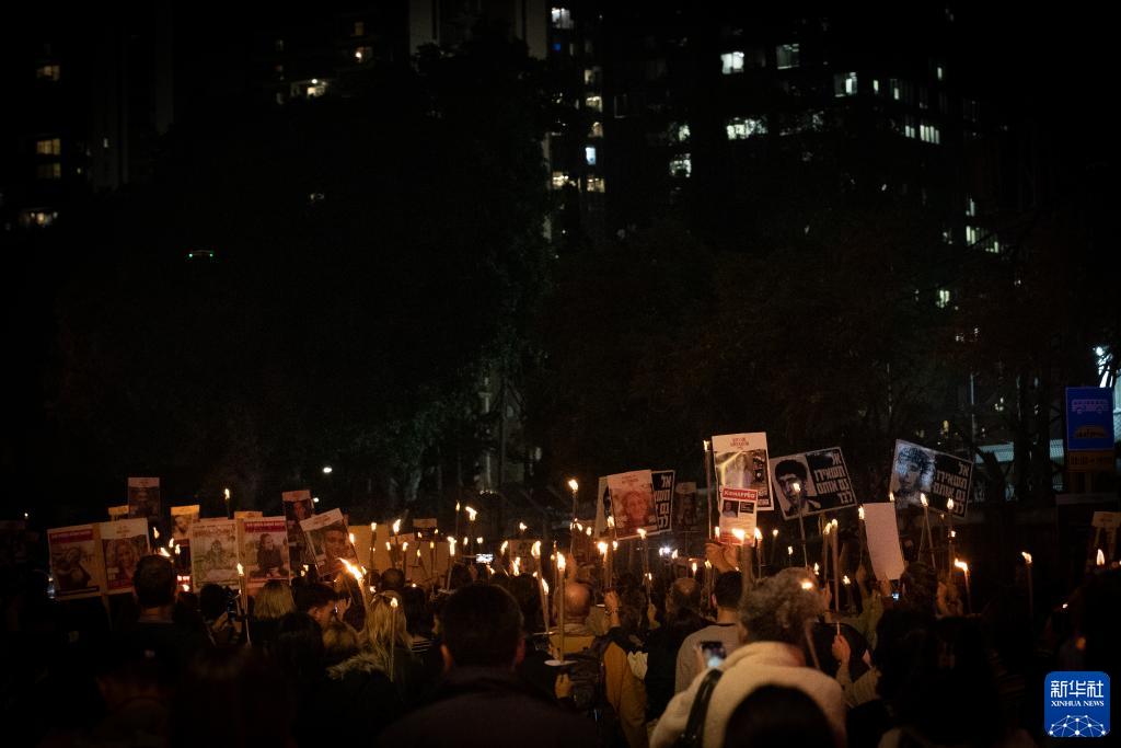 當日,猶太教傳統節日光明節來臨。本輪巴以衝突已持續兩個月,人們在這個特殊的光明節裏點亮蠟燭,祈盼被扣留在加沙地帶的人員早日歸來。