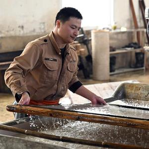 在位於涇縣的中國宣紙股份有限公司裏,“90後”工人已成長為獨當一面的巧匠。撈紙工管家明負責“掌簾”,和同伴相互配合,將竹簾放入紙漿槽,左抄右抄一撈一提,通過手感就能把紙張的重量、厚薄、均勻度控制在最小誤差;在蒸騰的熱氣中,曬紙工吳帆指尖輕捻,將厚厚一疊濕潤的紙張分離,在焙面上把紙張刷平整、烘乾,動作一氣呵成。他們説,宣紙製作工藝有着深厚的文化底蘊,自己還要在工作中不斷精進技藝,希望將來也能夠帶徒弟,把手藝一代一代傳承下去。