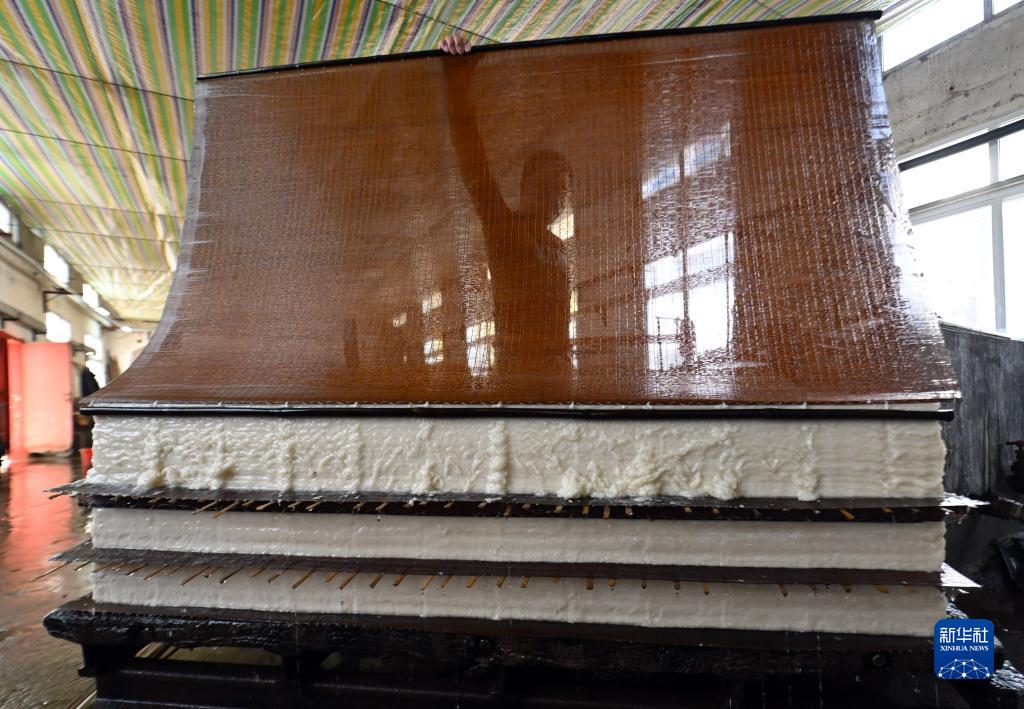 在位於涇縣的中國宣紙股份有限公司裏,“90後”工人已成長為獨當一面的巧匠。撈紙工管家明負責“掌簾”,和同伴相互配合,將竹簾放入紙漿槽,左抄右抄一撈一提,通過手感就能把紙張的重量、厚薄、均勻度控制在最小誤差;在蒸騰的熱氣中,曬紙工吳帆指尖輕捻,將厚厚一疊濕潤的紙張分離,在焙面上把紙張刷平整、烘乾,動作一氣呵成。他們説,宣紙製作工藝有着深厚的文化底蘊,自己還要在工作中不斷精進技藝,希望將來也能夠帶徒弟,把手藝一代一代傳承下去。