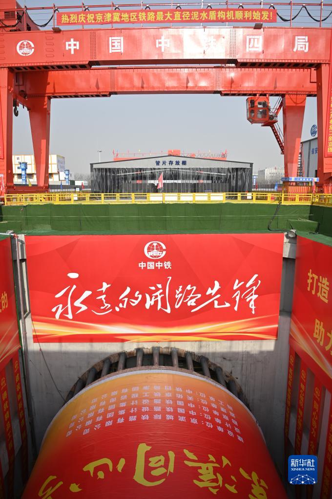 當日,京津冀區域直徑最大鐵路盾構機“京濱同心號”始發儀式在中鐵四局京濱鐵路施工現場順利舉行。該盾構機總長135米,總重約3000噸,開挖直徑13.8米,用於京濱鐵路下穿天津機場區域的天津機場1號隧道施工。