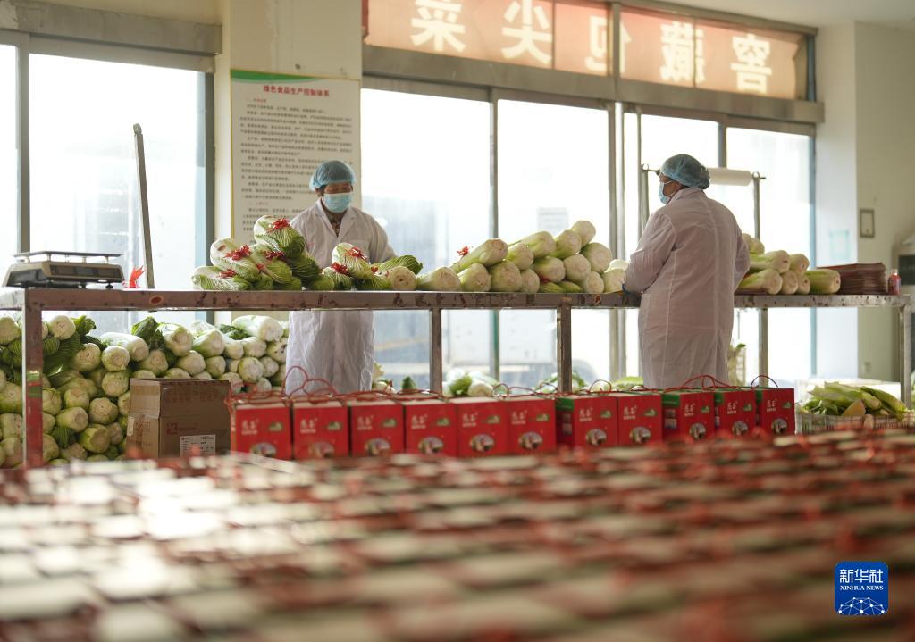 時下,河北省玉田縣國家地理標誌保護産品包尖白菜經過窖藏後達到上市要求,農民們忙着進行清理、稱重、包裝等工序。