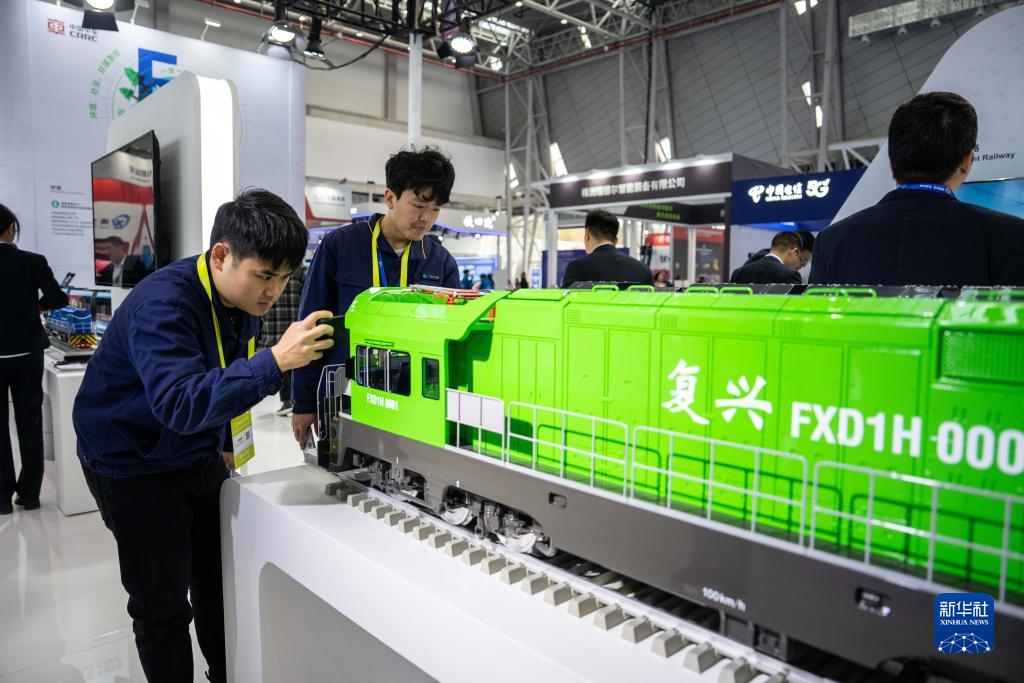 12月8日,在株洲國際會展中心,觀眾在拍攝列車模型。