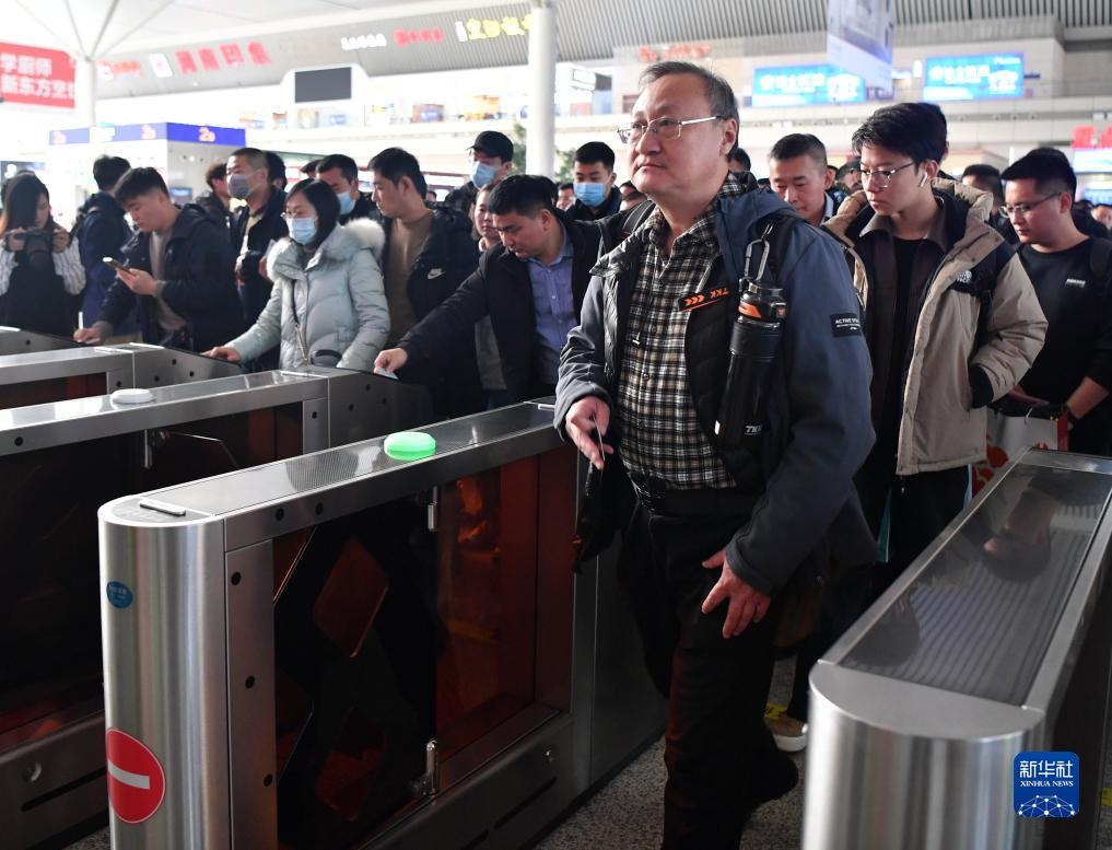 12月8日,乘坐濟鄭高鐵鄭州東站首發G4830次列車的旅客在鄭州東站檢票進站。