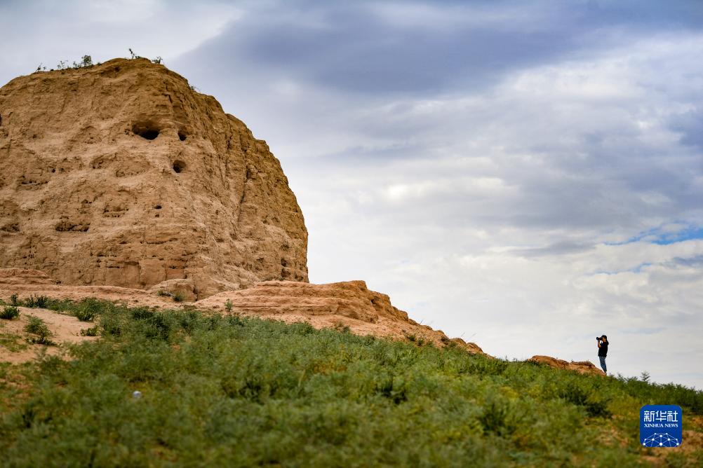 陳靜在給瞭馬墩烽火&拍攝照片,記錄它不同時間的景象(8月17日攝)。