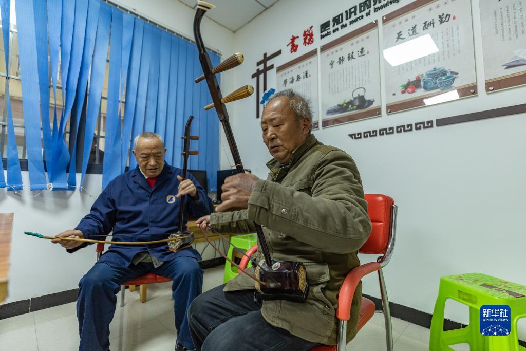 12月7日,在重慶市豐都縣三元鎮灘山壩社區的“新豐書院”,當地居民在拉二胡。