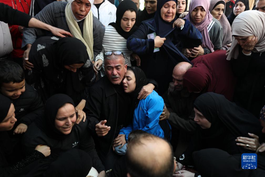 12月8日,在約旦河西岸城市圖巴斯附近一處難民營,人們參加被以軍打死的巴勒斯坦人的葬禮。