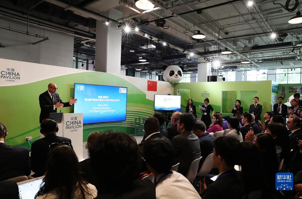 12月8日,在阿聯酋迪拜的COP28中國角,《聯合國氣候變化框架公約》秘書處執行秘書西蒙·斯蒂爾在“應對氣候變化南南合作高級別論壇”上發言。