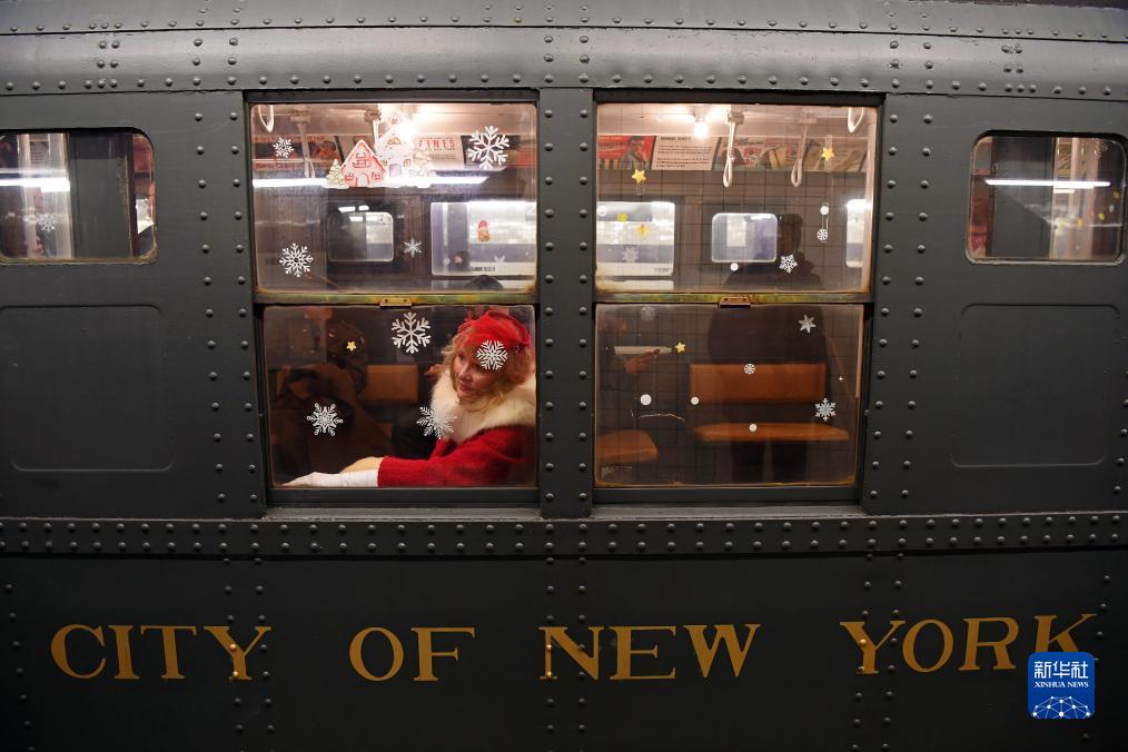 12月2日,在美國紐約,人們乘坐“懷舊地鐵”專列。
