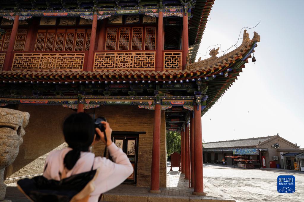 7月14日,嘉峪關絲路(長城)文化研究院文化遺産監測中心副研究館員柳君君在甘肅嘉峪關關城景區巡查。