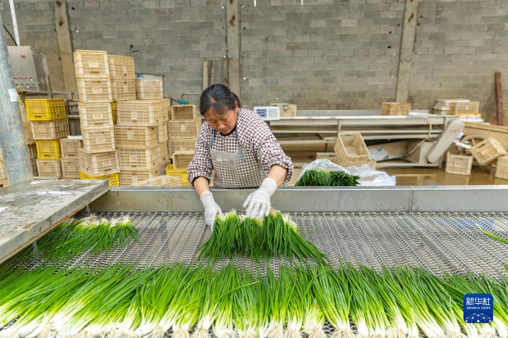 12月8日,在重慶市豐都縣武平鎮壩周村香蔥共富農場,村民在香蔥清洗車間工作。