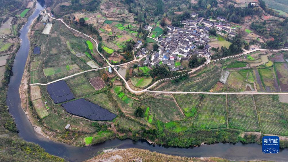 12月9日拍攝的黃平縣一碗水鄉印地壩村(無人機照片)。