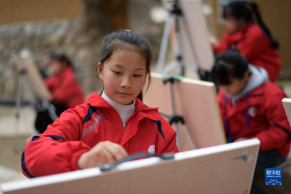 12月9日,學生在黃平縣一碗水鄉印地壩村寫生。