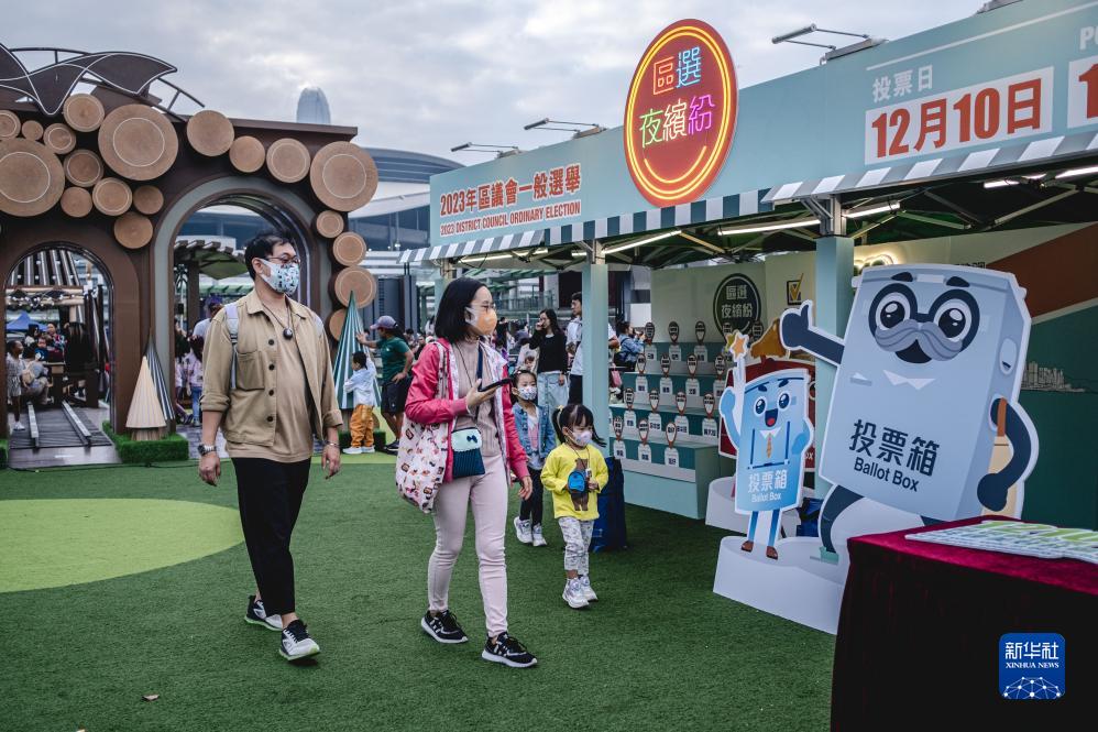 12月9日,市民在香港灣仔海濱參加“區選繽紛日”系列活動。