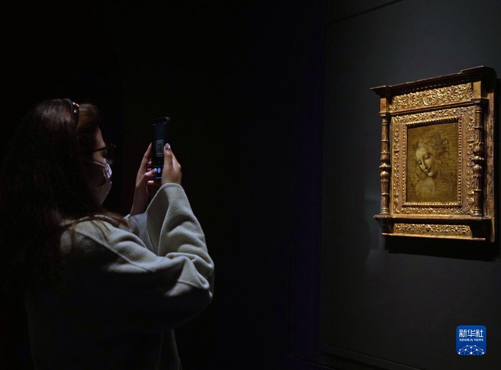 12月9日,媒體人員在參觀達·芬奇的油畫《頭髮飄逸的女子》。