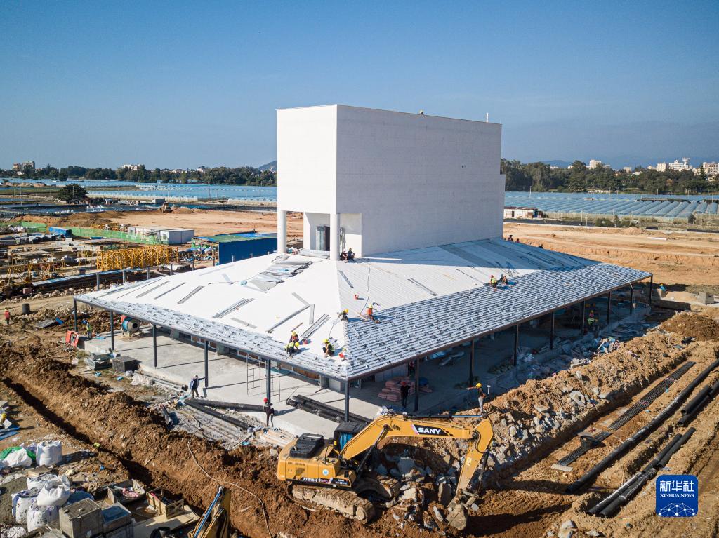 12月9日在海南省樂東黎族自治縣拍攝的建設中的鶯歌踏浪驛站(無人機照片)。