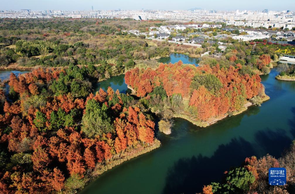 12月9日拍攝的杭州西溪濕地景色(無人機照片)。
