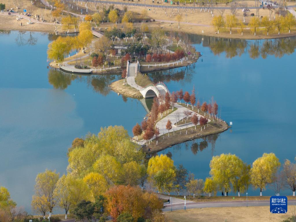 12月9日拍攝的安徽省合肥市肥東縣和睦湖公園景色(無人機照片)。