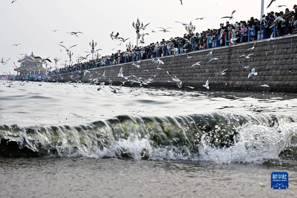 近日,成群結隊的海鷗在青島棧橋低空盤旋、翩翩飛舞,形成了冬日海濱一道獨有的風景。每年冬季,數以萬計的海鷗從西伯利亞等地飛抵島城棲息越冬,人鷗和諧共生的畫面已成為一張靚麗的城市名片。