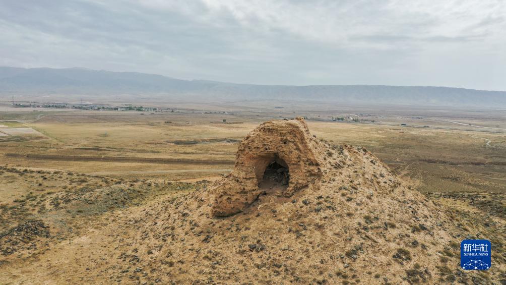 在甘肅省張掖市山丹縣拍攝的金山子烽火&(無人機照片,5月16日攝)。