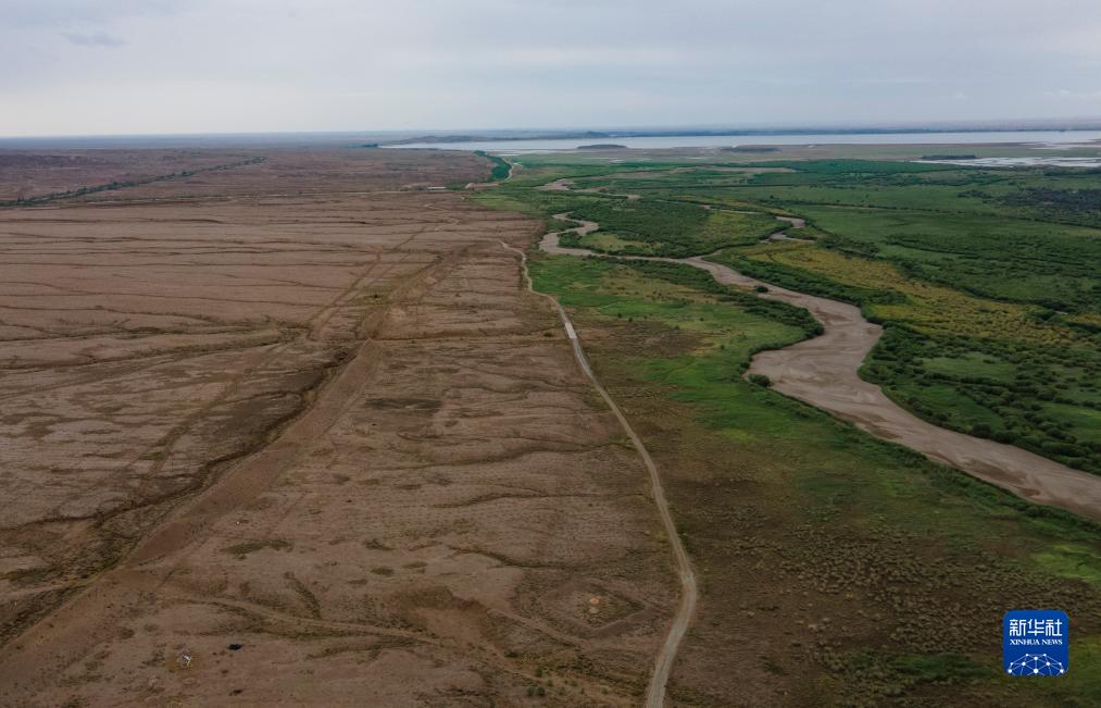 位於甘肅省武威市民勤縣的紅崖山水庫長城(無人機照片,7月12日攝)。