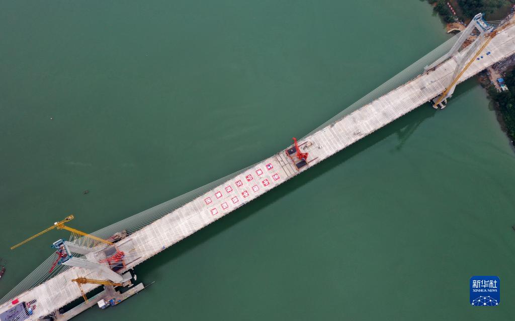 12月10日,廣西上橫(上林縣至橫州市)高速公路西津鬱江特大橋順利合龍。據了解,上橫高速公路是廣西交通基礎設施建設的重要項目,西津鬱江特大橋是上橫高速公路一期工程全線唯一控制性工程,橋梁全長1190米,主橋長680米,主跨400米,為雙塔雙索面鋼混組合梁斜拉橋。
