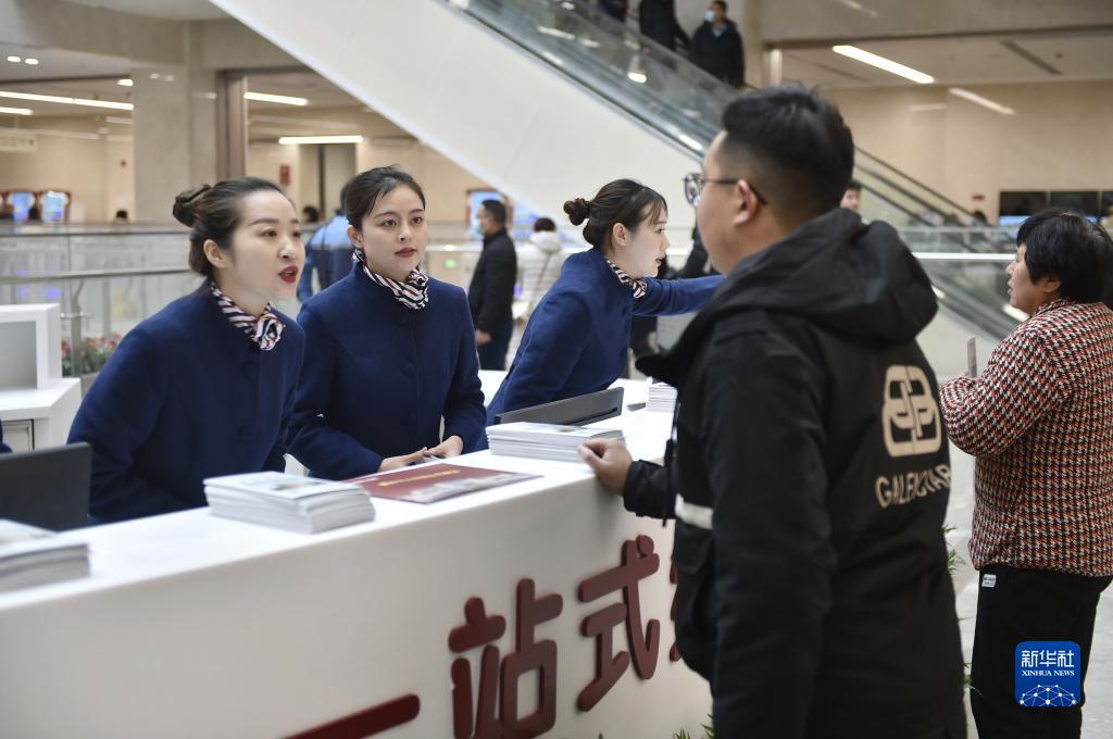 12月10日,工作人員在河南省人民醫院北院區服務台為患者提供諮詢服務。