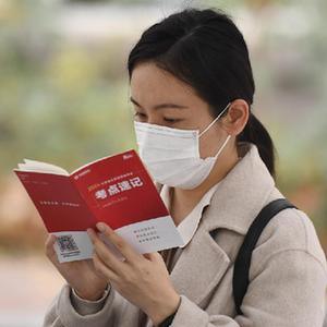 12月10日,在山東省棗莊市第四十一中學南校考點,考生在等候進場時復習。