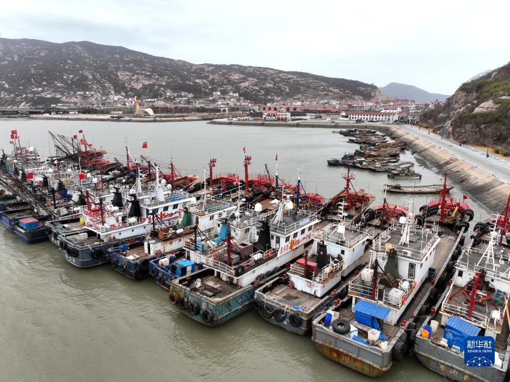 12月10日,在江蘇省連雲港市高公島漁港碼頭,大批漁船停泊在港灣(無人機照片)。