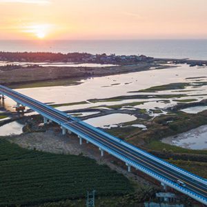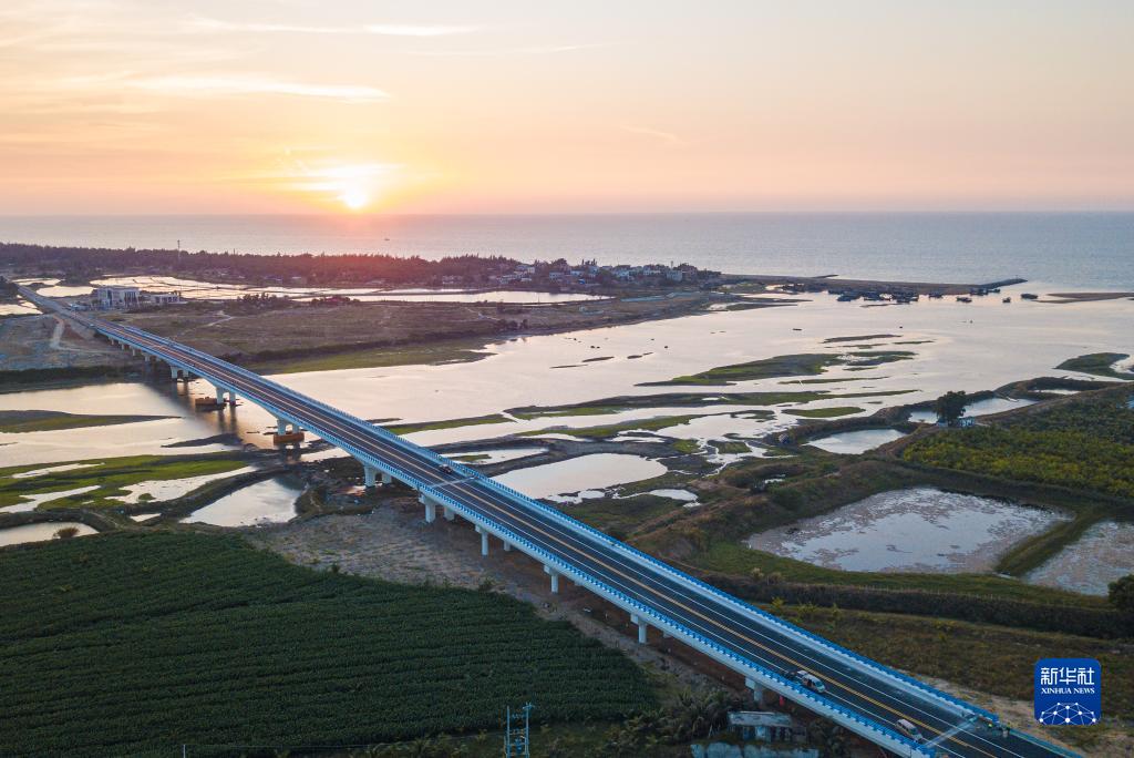 12月9日拍攝的海南環島旅游公路東方段感城港大橋(無人機照片)。