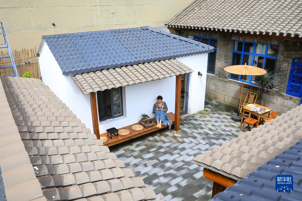 姜一哥在丹東天后街藝術空間繪畫,她在這裡展示自己的作品和文創産品(8月22日攝)。