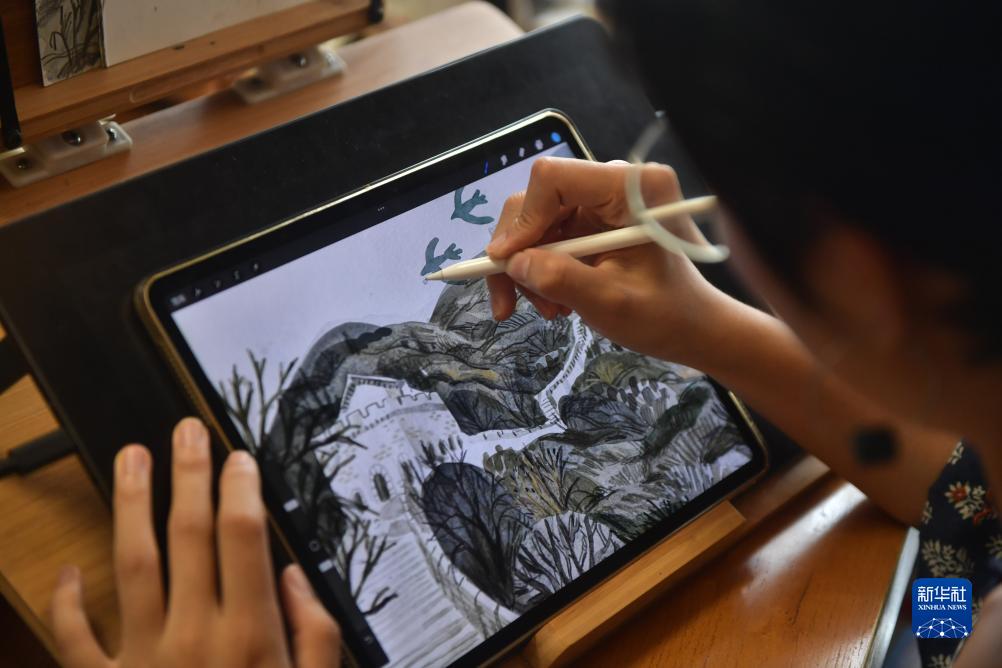 理性、沉穩的虎山長城,與姜一哥感性、靈動的筆觸,交織融合在一幅幅畫作中。在社交平台上,姜一哥的長城畫作引起了很多網友的興趣,她也會在線上分享虎山長城的故事。她説:“希望通過畫作,讓大家看到一個更溫柔、更浪漫、更親切的長城,也讓孩子們深入了解長城的歷史和文化。”