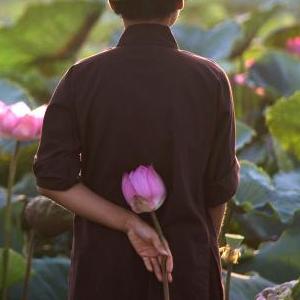 2020年7月15日,一名市民在越南首都河內西湖畔遠眺荷塘。西湖位於河內市西北部,是河內的著名旅游勝地。