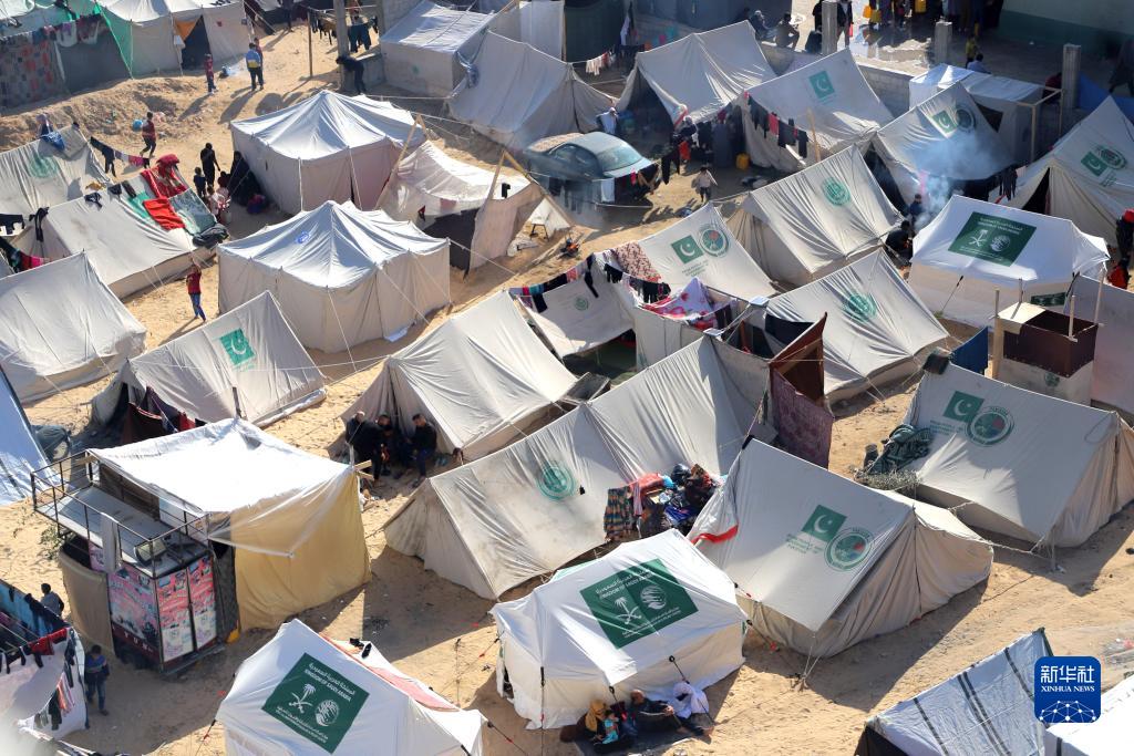 這是12月11日在加沙地帶靠近埃及邊境地區拍攝的一處臨時營地。