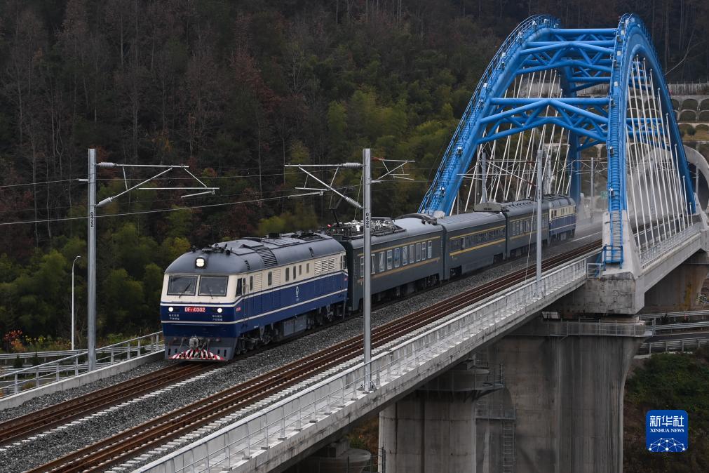 12月12日,動態檢測列車行駛在甬金鐵路紹興市所轄嵊州市境內的線路上。