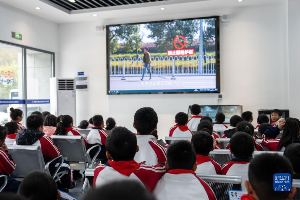 12月12日,在瀏陽市交通安全宣傳教育實踐基地,學生在觀看少年兒童交通安全警示教育片。