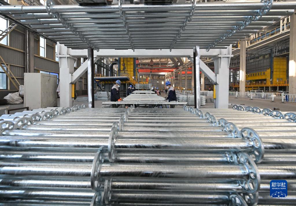 12月12日,工人在河北省唐山市豐南區一家新型建築器材企業的生産線上工作。