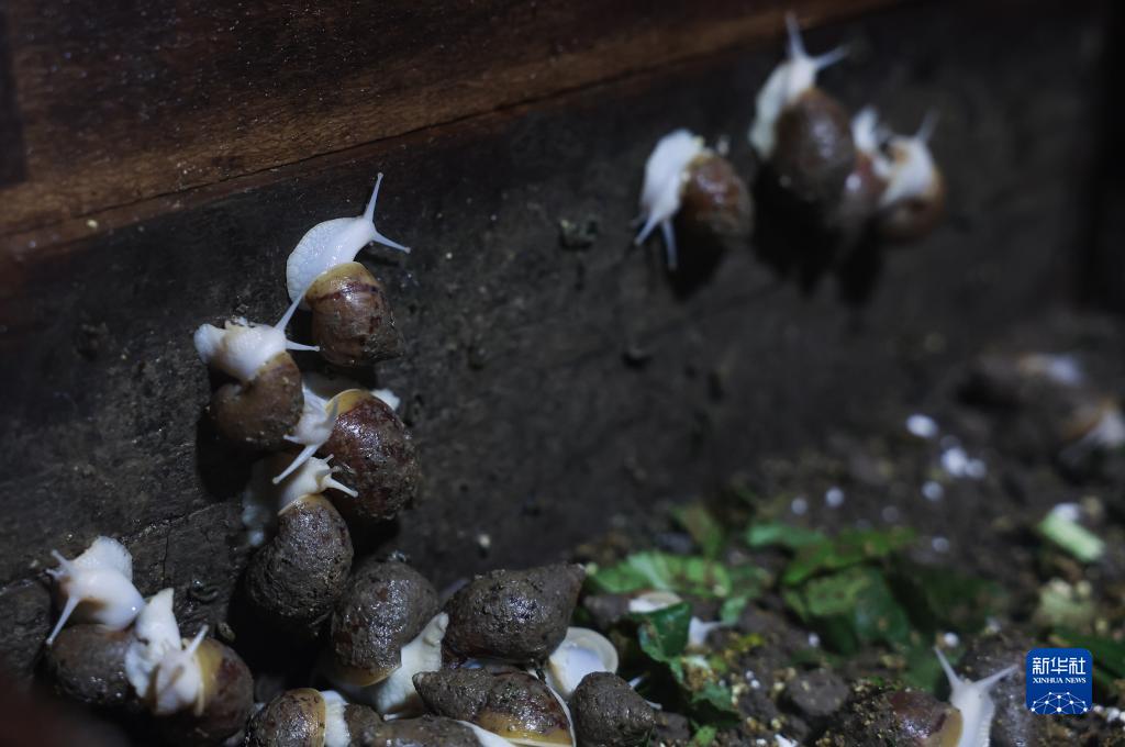 這是12月12日拍攝的南湖區福良蝸牛合作社養殖箱內養殖的白玉蝸牛。