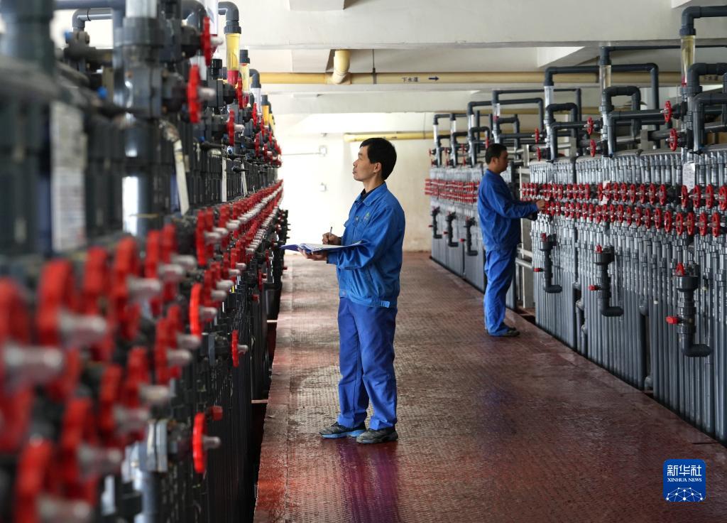 12月12日,工作人員在石家莊市欒城區聖雪大成制藥公司的提取車間查看設備運行狀況。