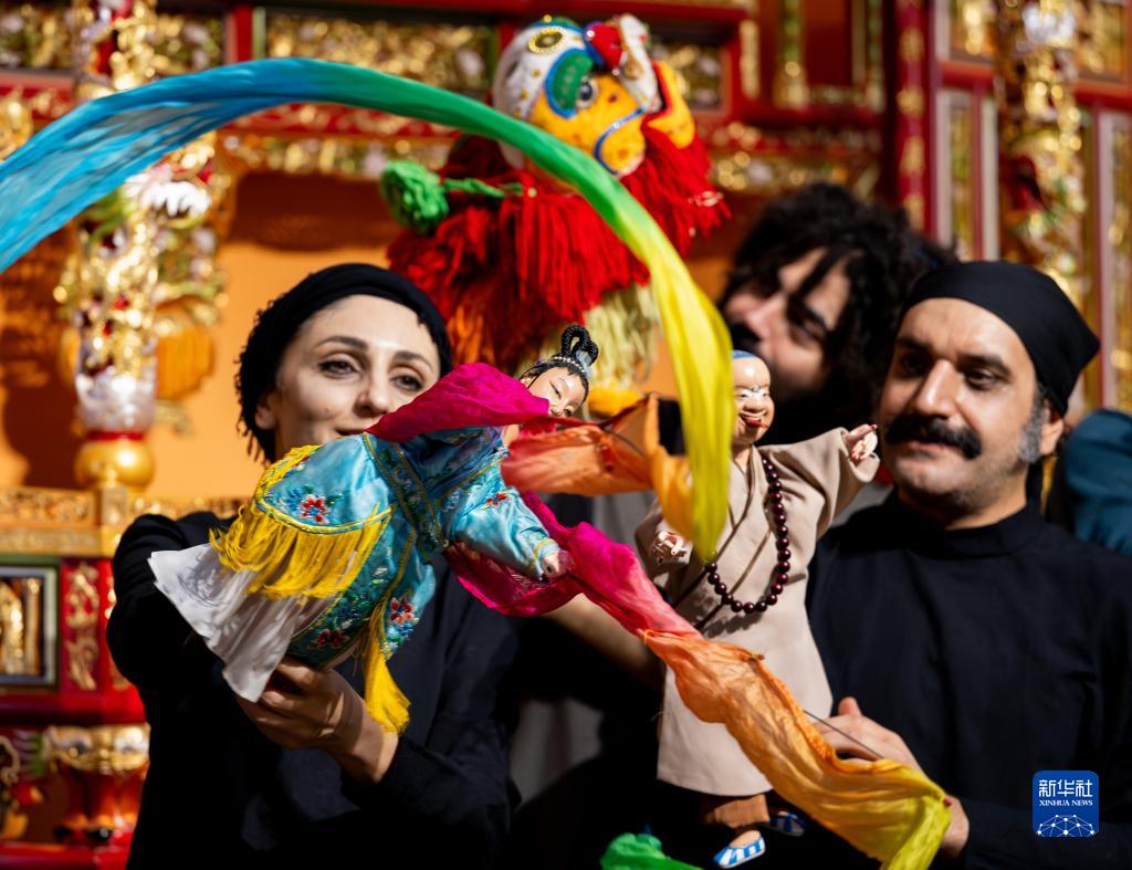 在福建泉州晉江市掌中木偶藝術保護傳承中心,法希瑪·巴羅奇與晉江市掌中木偶藝術保護傳承中心演出隊隊長、市級非遺傳承人陳代宮一見如故,兩名中外藝術家&上台下交流互鑒,相互學習表演技藝。