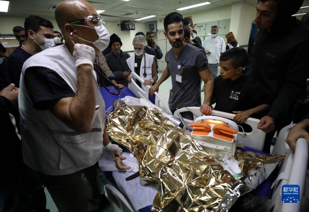 12月12日,在約旦河西岸城市傑寧,一名傷者被轉送至當地醫院。