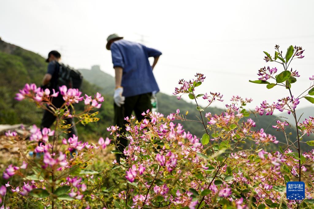 嚴欣強(右)和嚴共明在北京延慶的長城花家窯子段考察途中(9月5日攝)。